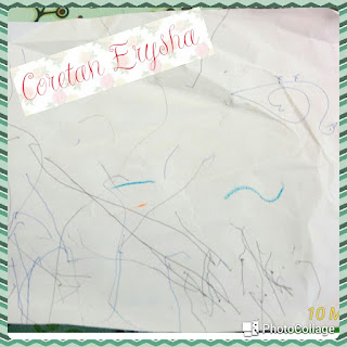 Esok harinya aku coba lagi ngasih kertas kosong n pake crayon warna warni biar Eryshanya makin tertarik lagi. Langsung dech ideku makin liar, pengen beliin Erysha kertas karton lah, beli kanvaslah, beli cat warnalah dll buat ngajakin Erysha bikin ini itulah, corat coret ini itulah dan banyak hal lagi. Lalu dalam hati aku berkata "sabar Yen, tenang Erysha masih 1 tahun jangan dulu" hihihi. Secara dulu aku pernah ngajar 5 tahun di Tk, jadi serasa membangkitkan lagi jiwa guru TKku hahaha.. Allhamdulillah pokoknya kepake banget ilmunya buat ke anak sendiri.