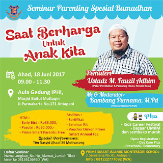 Seminar Parenting Ramadhan " Saat berharga Untuk Anak Kita" oleh Ustad M. Fauzil Adhim ahli (Parenting Pernikahan, Parenting Islami, dan Penulis Buku Best Seller)