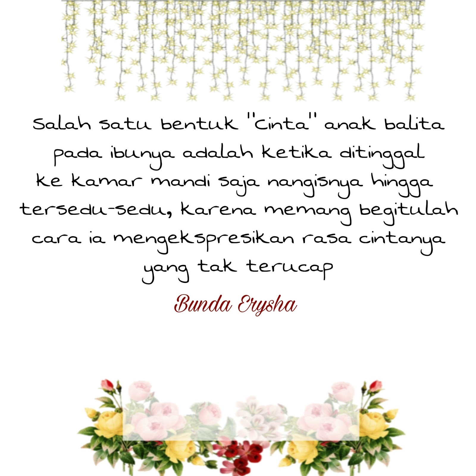 Percayalah ketika mereka telah pergi dari rumah kita. Kita akan merindukan masa-masa lelah itu bersama mereka. Kita akan rindukan  kamar yang selalu berantakan itu, ruang tamu yang dahulu sering kita keluhkan itu, teriakan dan tangisan anak yang selalu menjengkelkan itu,  akan sunyi seperti tak berkehidupan. Lalu terbayang suara dan tangisan mereka dahulu yang kelak menjadi kita rindukan di hari tua kita. Ingatlah itu semua bunda