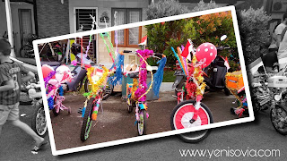 Ini adalah sepeda hias yang menang di komplek saya. Lucu kannnnnn?