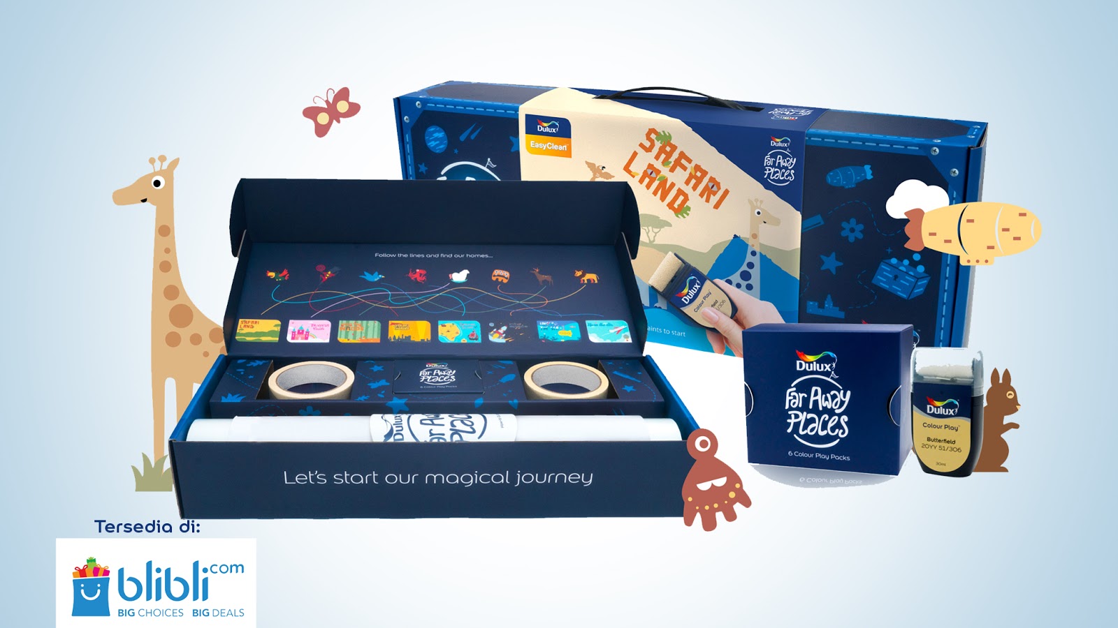Selain itu, terdapat 6 pak Dulux Colour Play, satu set stensil, satu set stiker, selotip dan panduan pengerjaan Dulux Far Away Places. Selain itu, terdapat 6 pak Dulux Colour Play, satu set stensil, satu set stiker, selotip dan panduan pengerjaan Dulux Far Away Places