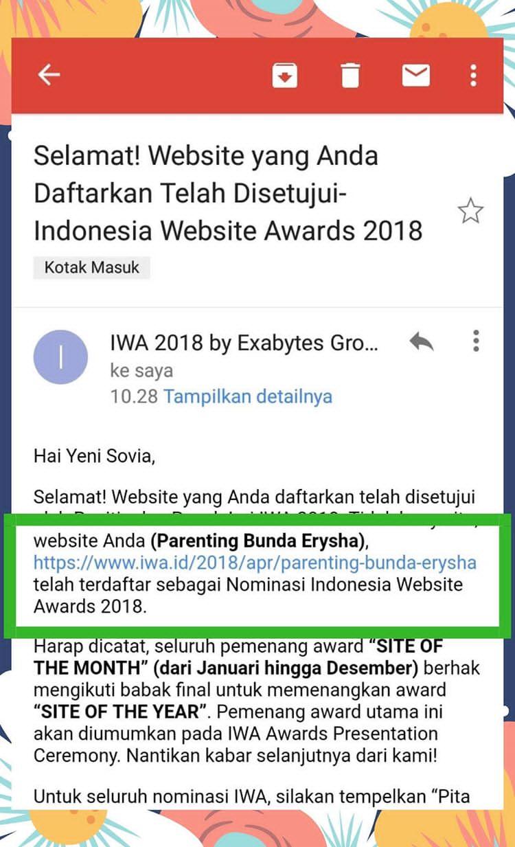 Allhamdulillah tahun ini masih diberikan kesempatan untuk beberapa kali menang lomba blog dan menulis. Dari semua kemenangan itu yang paling berkesan adalah ketika blogku yenisovia.com terpilih sebagai site of the mont dan masuk nominasi awards 2018 dari IWA (Indonesia Website Awards)