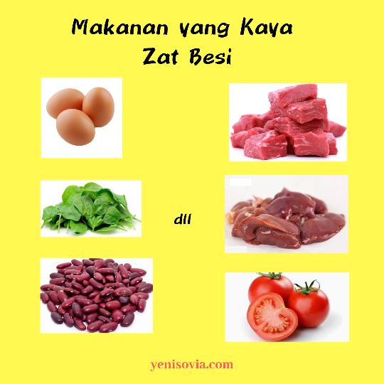 Ada beberapa makanan yang kaya zat besi seperti bayam, daging, kacang merah, tomat, telur dan lain-lain.
