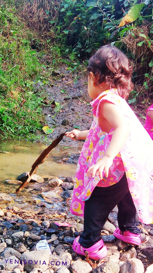 | Waktu Erysha bermain di Sungai Citarum sebelum berenang |