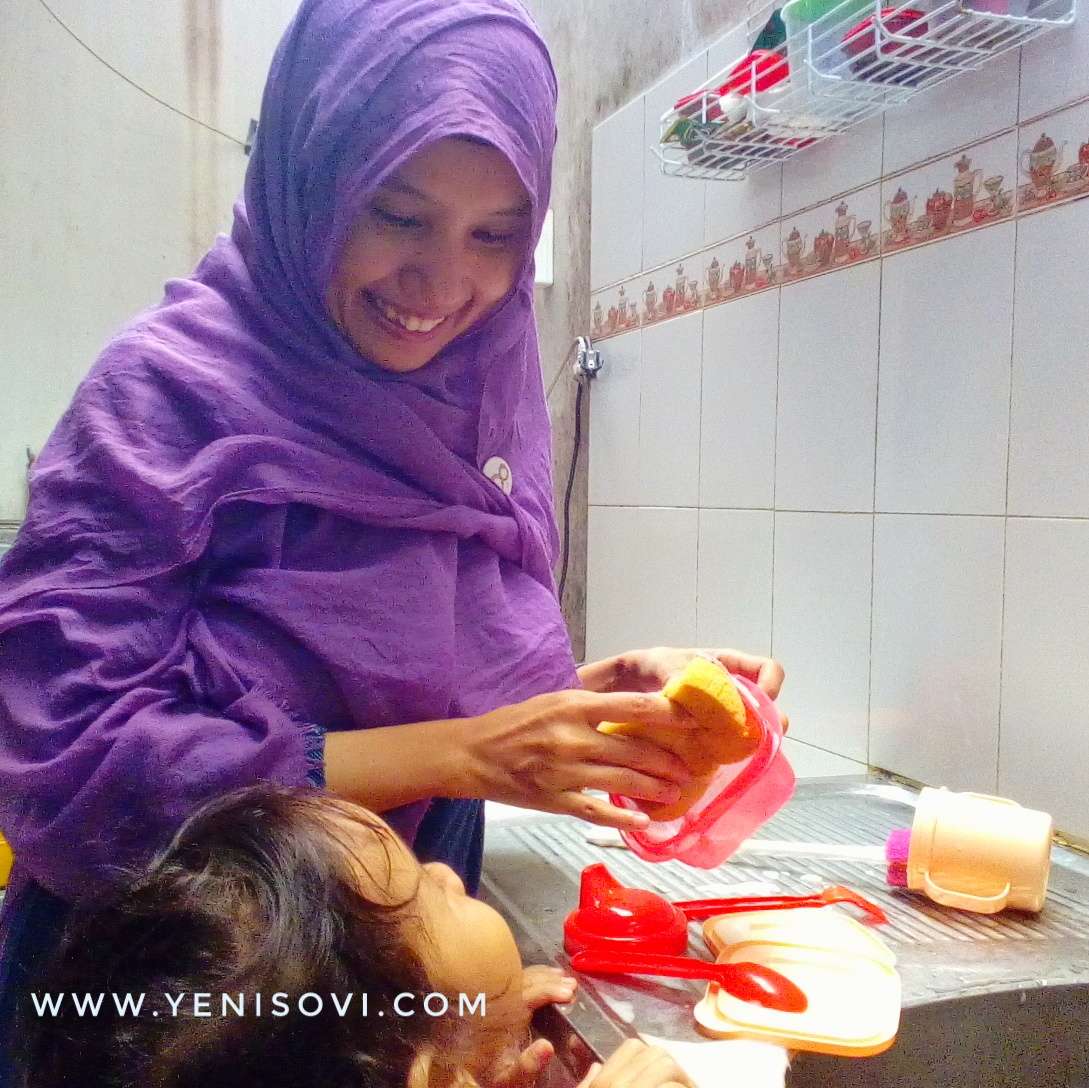 | Erysha lagi temani Bundanya cuci piring 😍 |