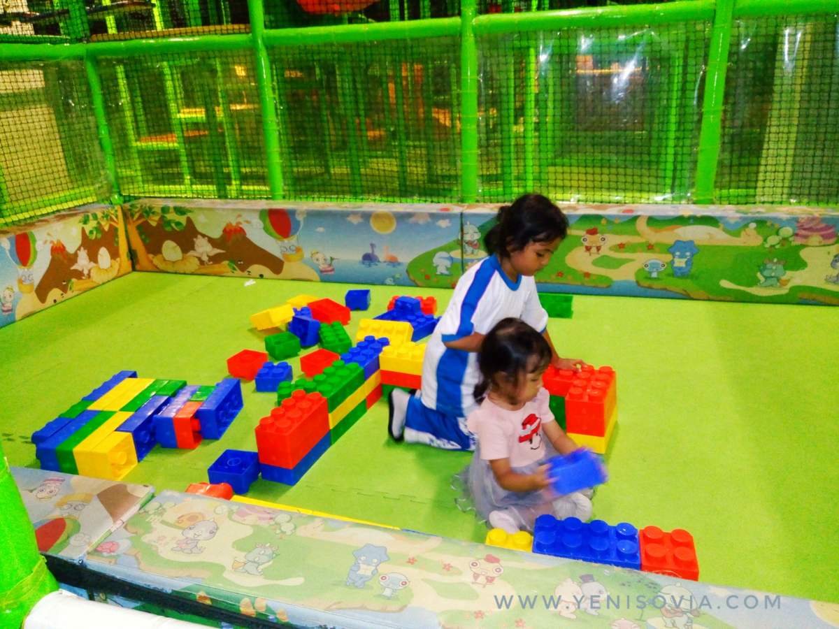 Di wahana ini ada berbagai macam perosotan dari yang pendek sampai yang ukurannya panjang dan tinggi, dari yang perosotannya bentuknya lurus sampai ada yang muter kayak terowongan gitu. Selain itu ada juga ayunan, tempat main lego besar, ada papan titian, mandi kubus dari busa dan ada juga khusus tampat trampolin besar