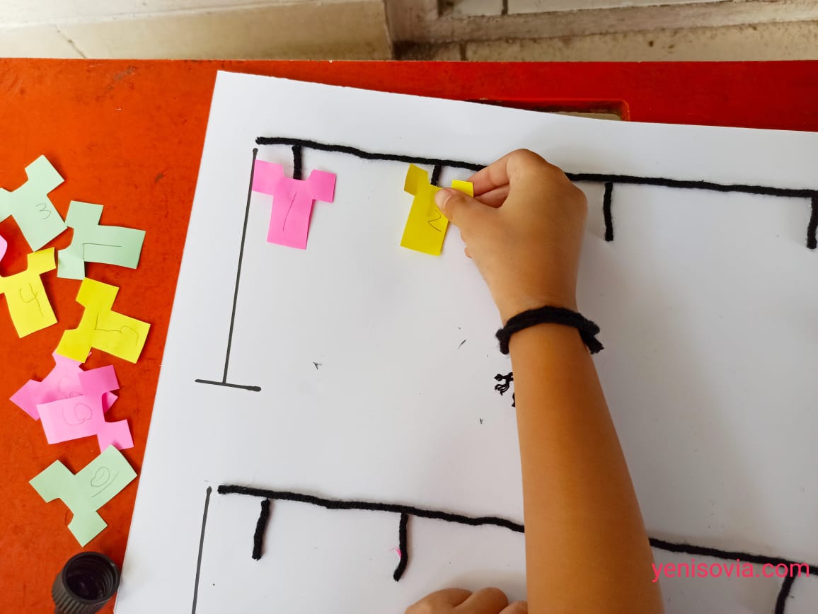 4. Mintalah anak menjemur bajunya dengan cara menempelkan pola baju.