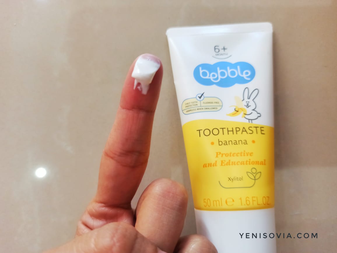 Toothpaste Bebble ini bisa digunakan untuk anak usia 6 bulan ke atas ya. Bisa menggunakan kain kasa atau sikat gigi sesuai usia anak kita. Kalau aku pakai kain kasa karena mulut Kayesa masih kecil jadi susah kalau dimasukkan sikat gigi