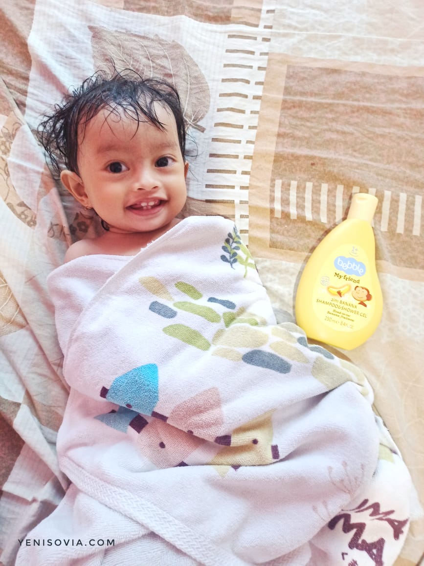 Sehabis mandi dengan Shampoo & Shower Gel dari Bebble ini alhamdulillah kulit Kayesa lembab, halus, lembut dan wangi. alhamdulillah aku bersyukur banget Kayesa cocok dengan sabun mandi sekaligus shampo dari Bebble ini. Rambutnya juga jadi mudah disisir dan mengkilat