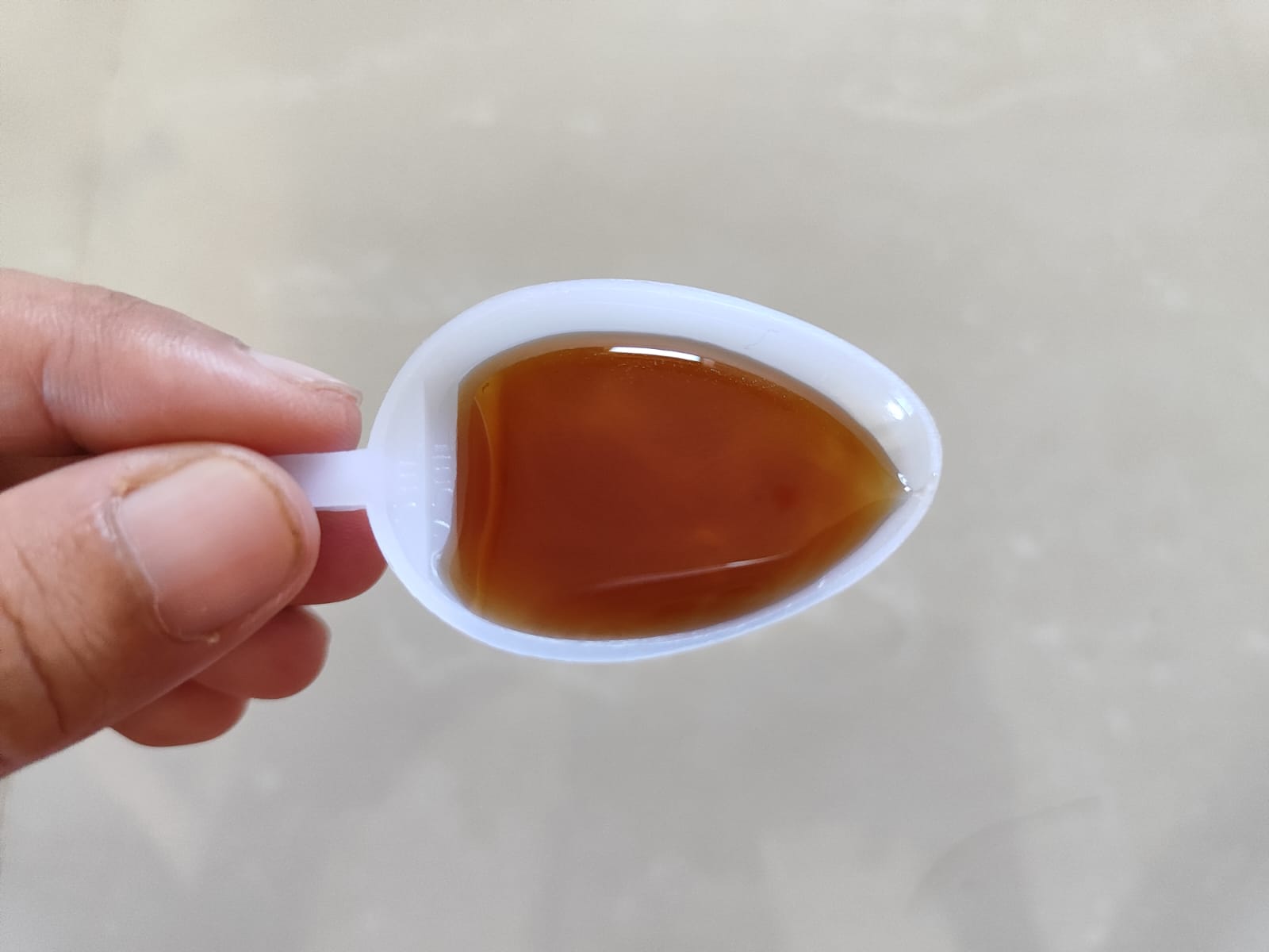 Isinya berwarna kuning kecoklatan. Wanginya wangi madu ya karena kandungan di dalamnya memang ada madunya. 1 botol berisi 130 ml. Kalau teksturnya sama seperti madu yang lain dan rasanya manis dan ada wangi jamunya sedikit. Tapi tetap enak dikonsumsi